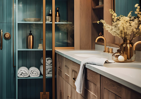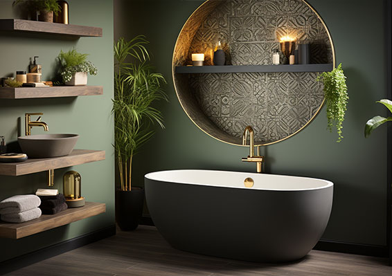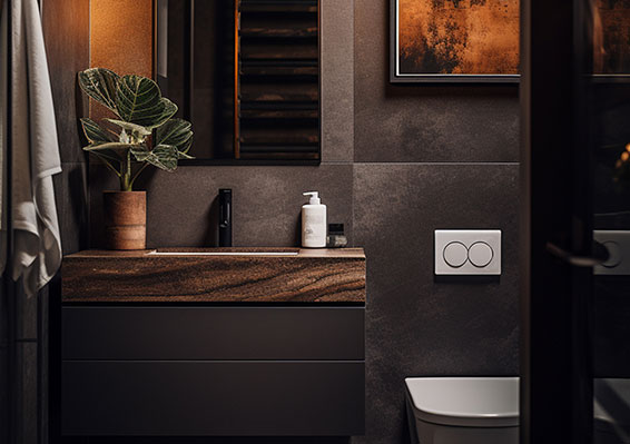 Het gevoel van een luxe hotelsuite, maar dan gewoon bij jouw thuis: dat is Hotel chique! In deze badkamerstijl ademt alles elegantie en comfort. De basis bestaat uit warme, donkere kleuren, aangevuld met een tikkeltje glamour. Denk bijvoorbeeld aan gouden of koperen accenten, luxe materialen zoals marmer en sfeervolle accessoires.